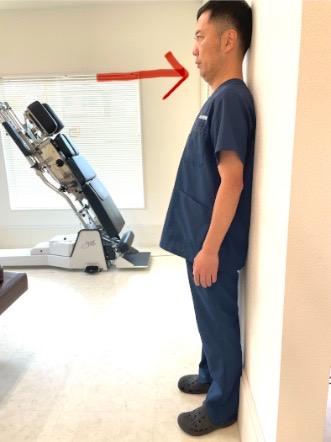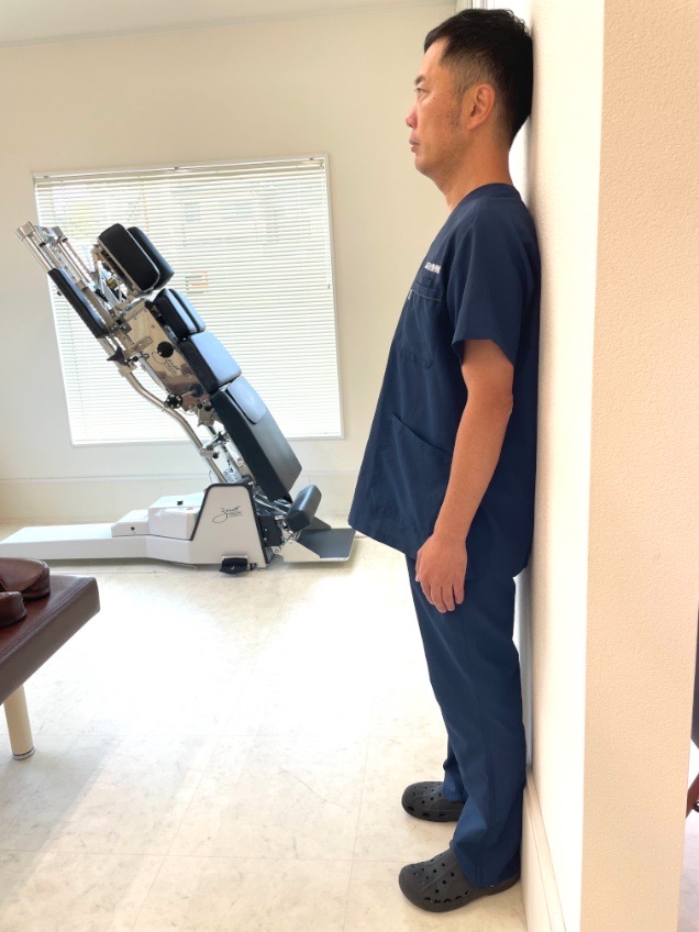 2.壁際に立って後頭部で壁を押しながら深呼吸