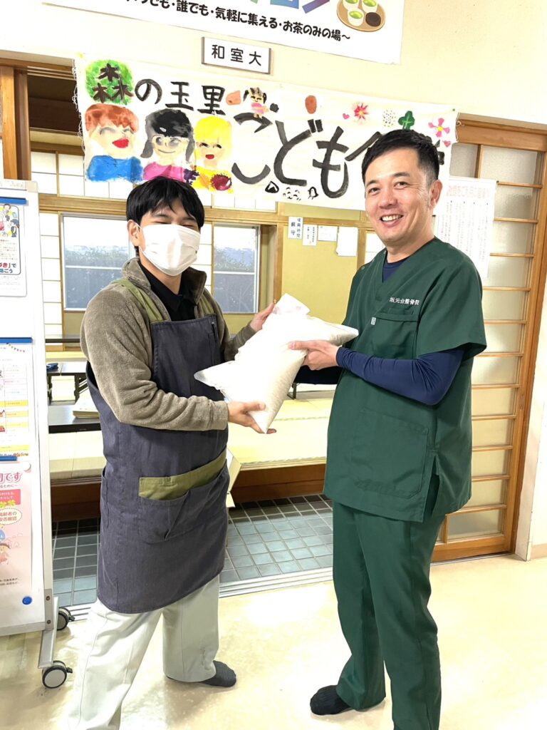 そのような状況を鑑みて何か私にもできることはないかと思案しました。そこで、いつもお世話になっている地域にある「森の玉里子ども食堂」にお米と、感染対策のための消毒液を寄付させていただきました。