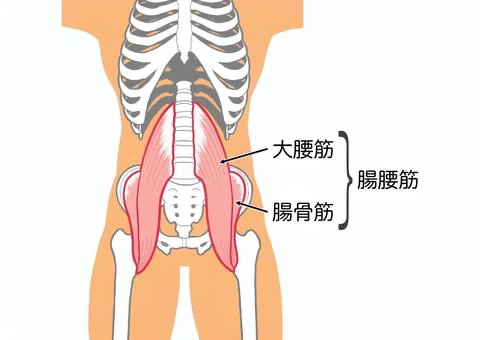 腸腰筋は、主に「大腰筋(だいようきん)」と「腸骨筋(ちょうこつきん)」という2つの筋肉から構成される総称です。これらの筋肉は、お腹の深部、つまり体の中心に近い場所に位置しています。具体的には、背骨の腰の部分(腰椎)から始まり、骨盤の内側を通って、太ももの骨(大腿骨)の付け根に付着しています。体の奥深くにあるため、直接触って位置を確認するのは難しい筋肉です。しかし、私たちの日常生活における基本的な動作に深く関わっているため、その存在と働きを理解することは非常に重要です。体の表面から見えにくい場所にあるからこそ、意識的にケアをすることが求められます。