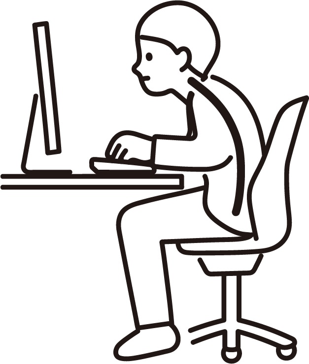 人間、座りはじめのうちはいい姿勢でいることができても、時間が経ってくるとだんだん背中が猫背気味になり、頭も前方へ突き出すような姿勢になっていくことが多いです。