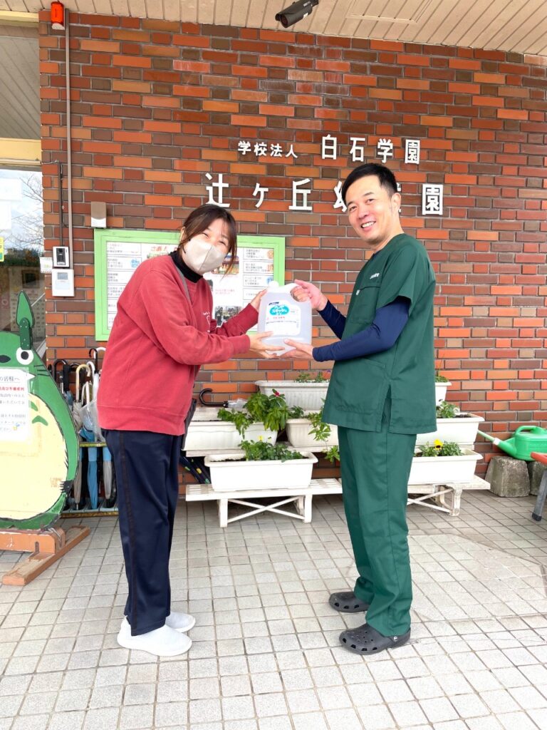 辻ヶ丘幼稚園様より「感染対策用の消毒液の寄付をありがとうございました。園児や職員のために活用させていただきます」と、感謝の言葉を頂戴しました。