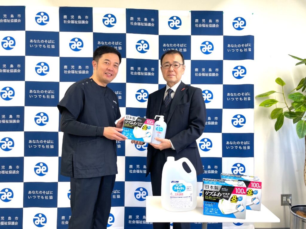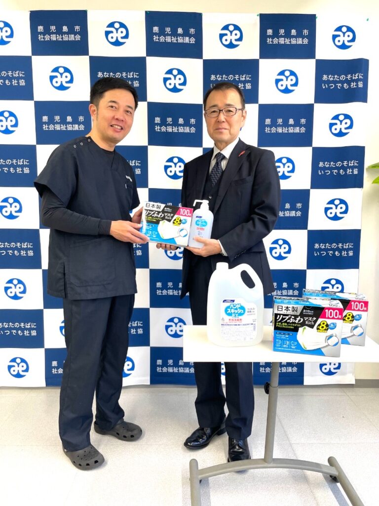 このような状況を鑑みて何か私にもできることはないかと思案しました。そこで、いつもお世話になっている地域にある鹿児島市社会福祉協議会に感染対策のための消毒液とマスクを寄付させていただきました。
