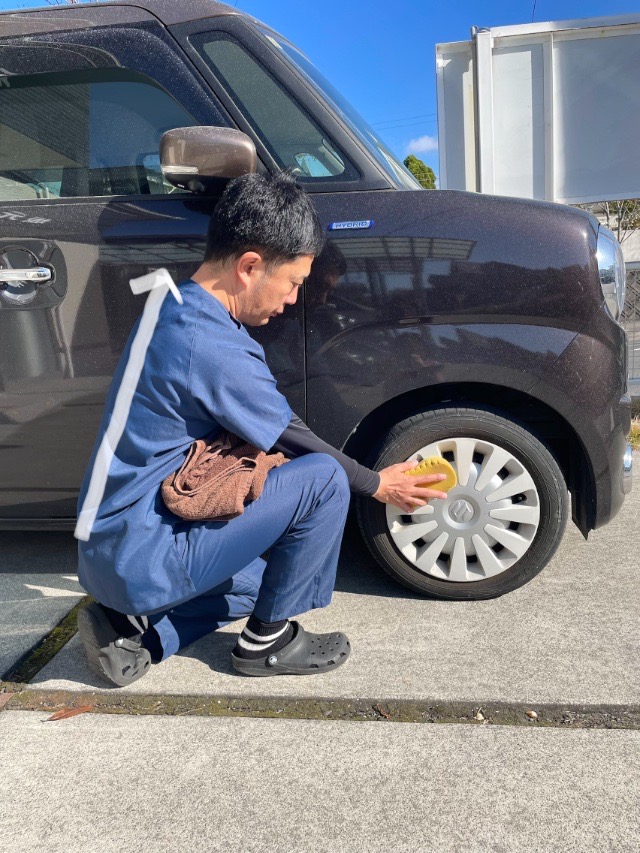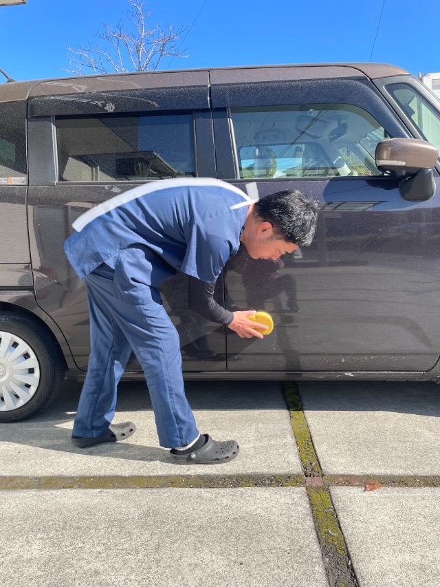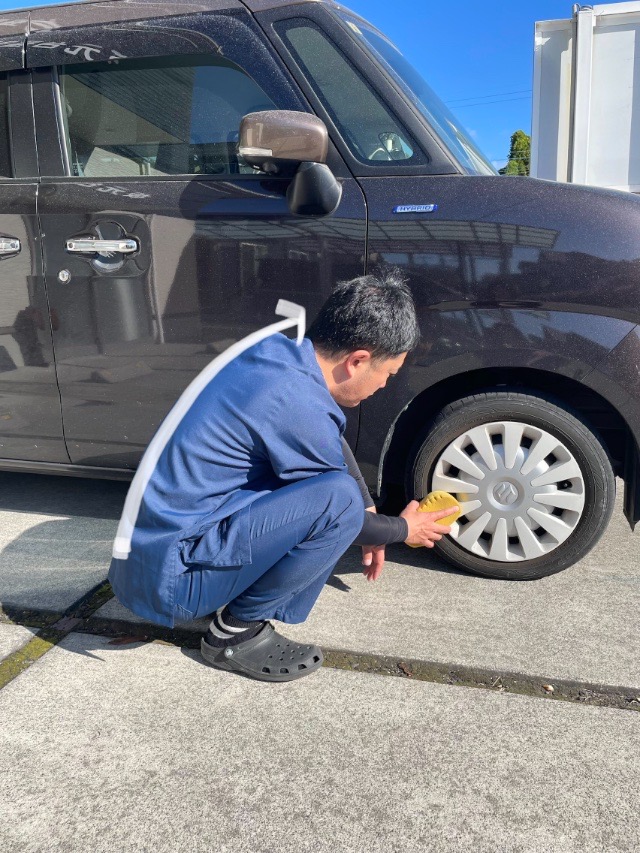 洗車前に、腰をあまり捻らなくていいような動線を作ることで負担を軽減させます。