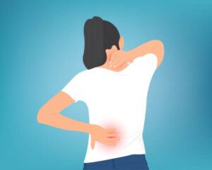 検査でSさんのお身体の状態を見させていただくと、全体的に猫背姿勢で頭が肩より前に突き出して巻き方も進行しておりました。そして、首の正常なカーブが失われている状態(ストレートネック)でした。