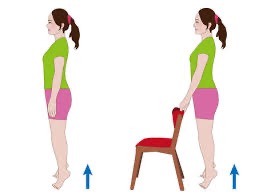 1.しっかりしたイスの背など安定したものにつかまって立つ。