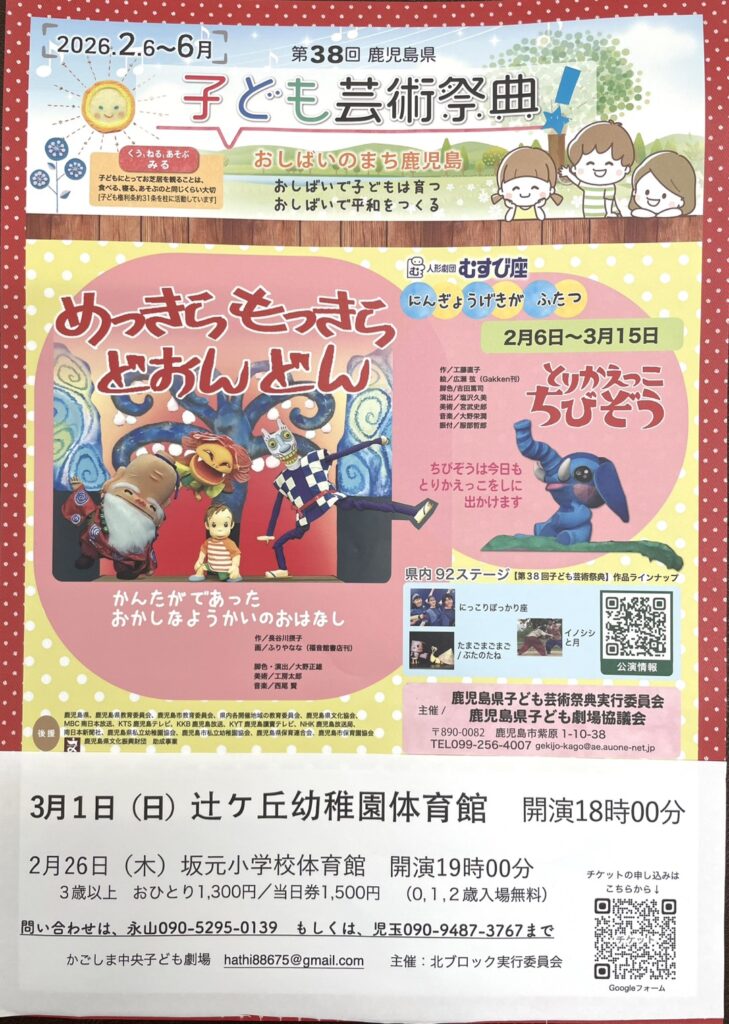 開演時間や場所などは「鹿児島県子ども劇場協議会ホームページ」などでご確認いただけたらと思います。