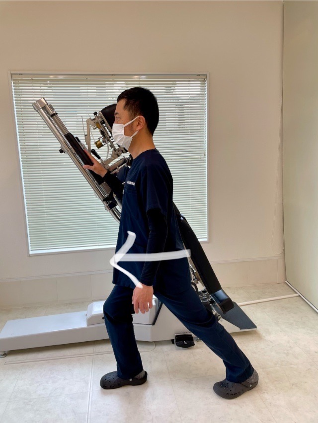 この姿勢は腰の筋肉に強い負担がかかり、緊張し続ける状態になります。腰の筋肉が伸ばされながら収縮するため、腰まわりの血流も悪化してしまいます。